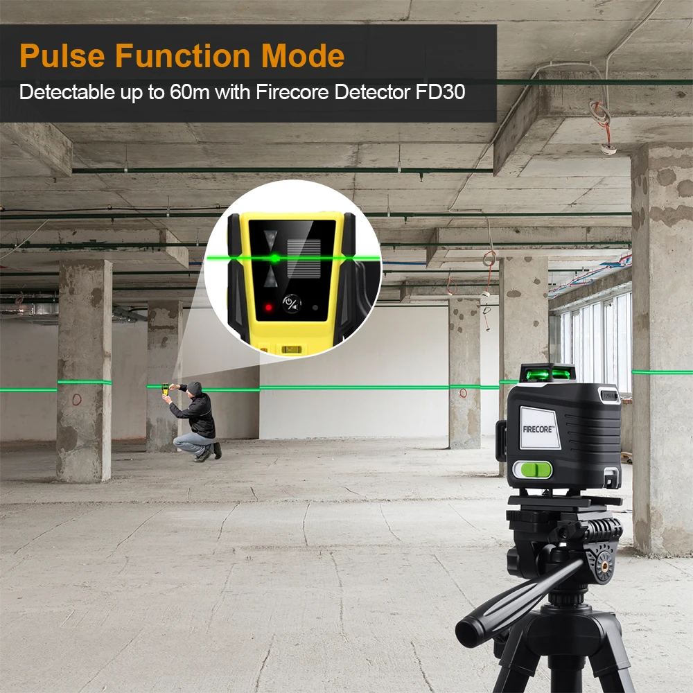 1: First, turn on laser level’s pulse mode——Single press middle button to enter the pulse mode, the right side indicator light will turn green.