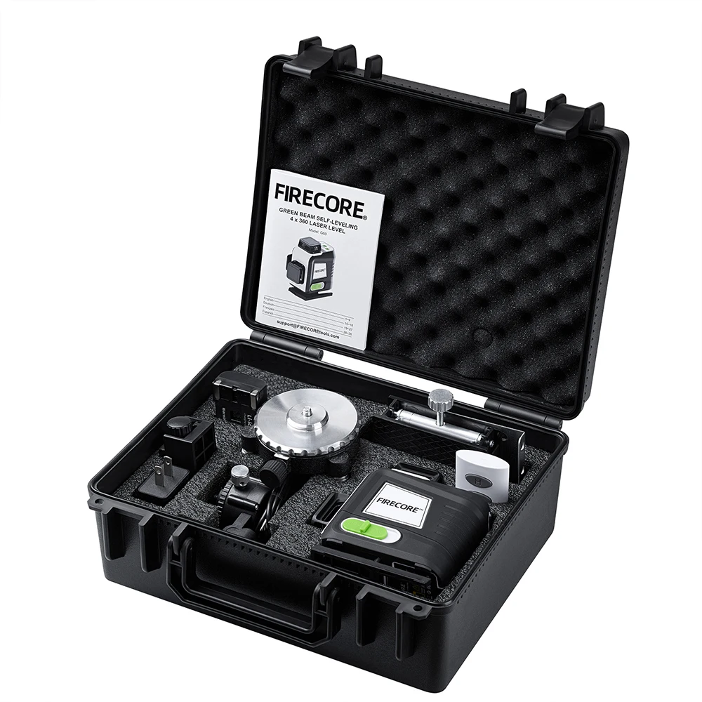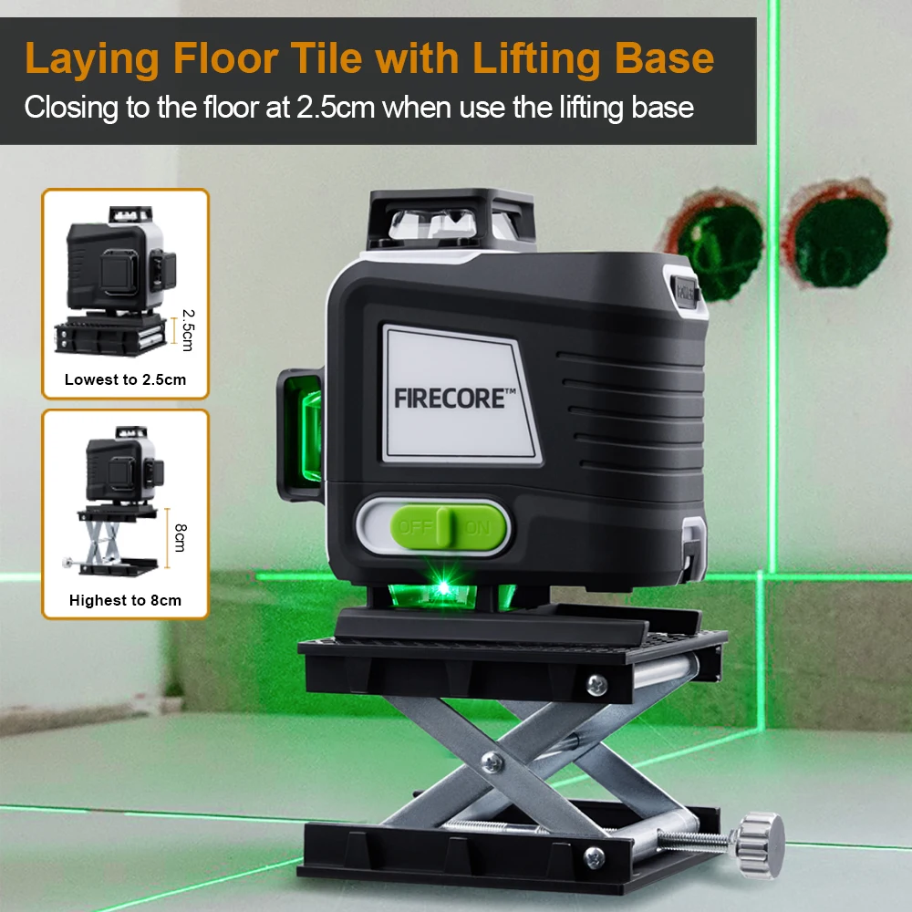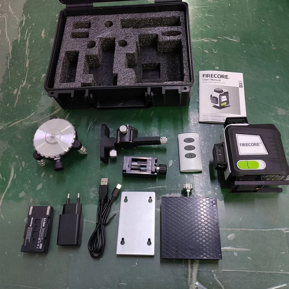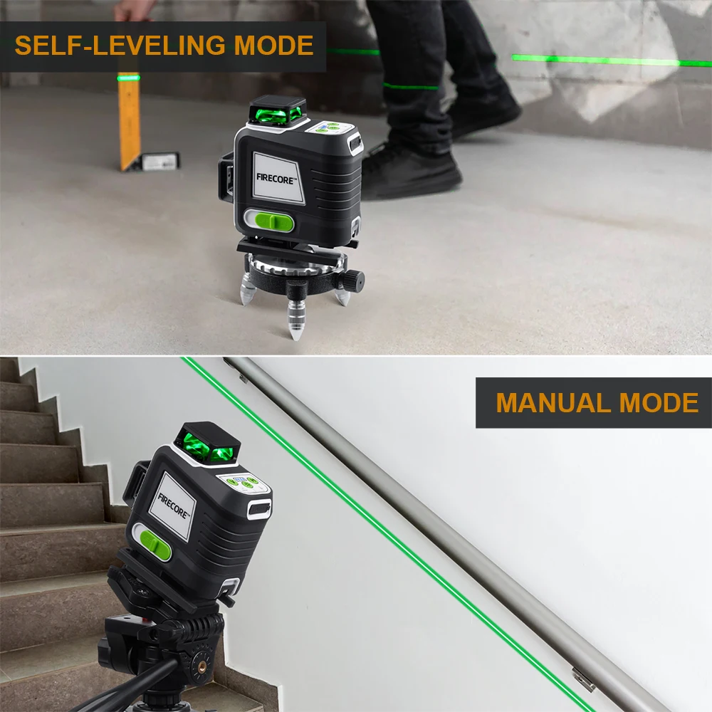 On state, the instrument will be self-leveling within 4°, when the instrument is using out of the leveling range, laser lines will keep flashing quickly.