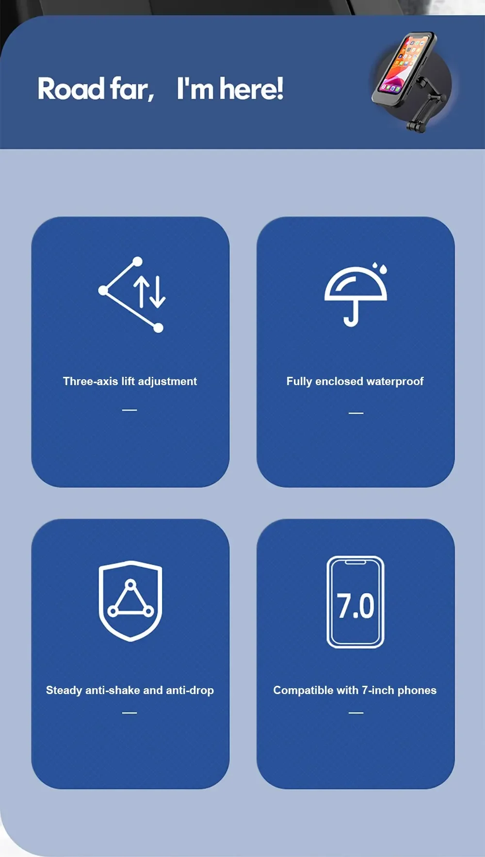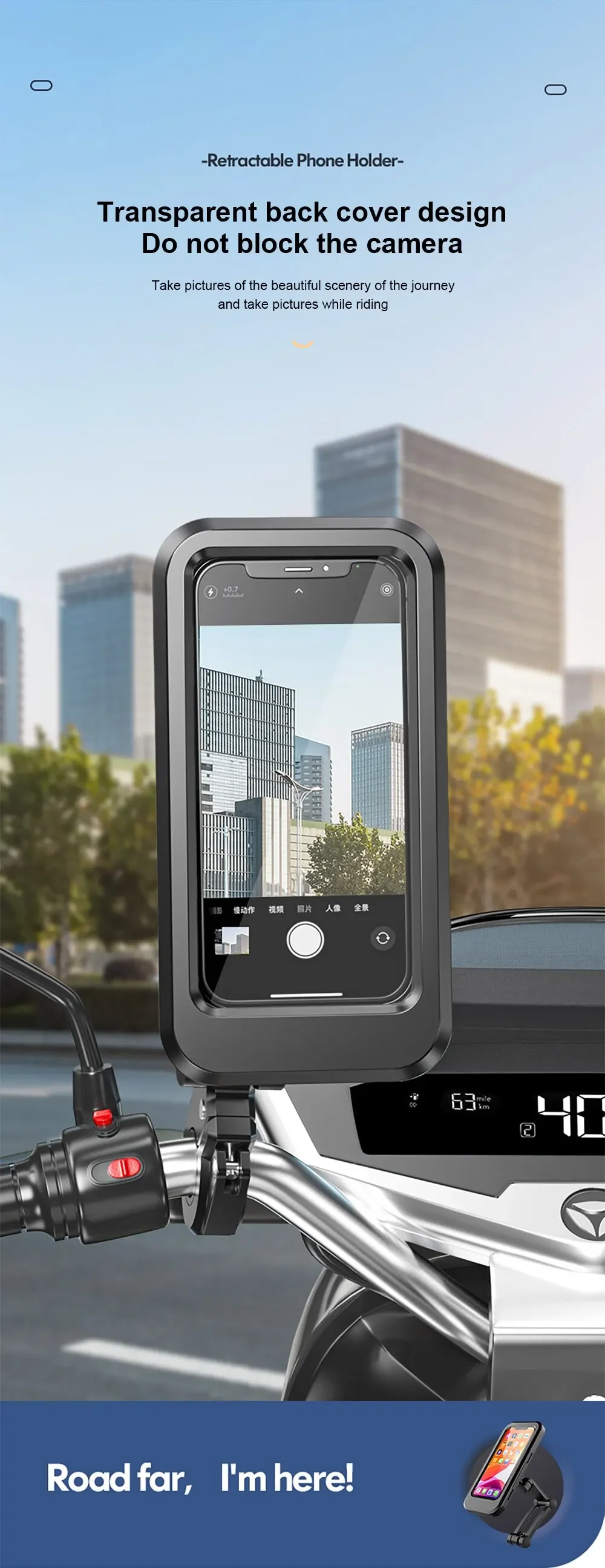 • Resistente al agua: este soporte para teléfono para motocicleta es resistente al agua, lo que garantiza que su teléfono permanezca seco incluso en condiciones de humedad.